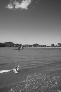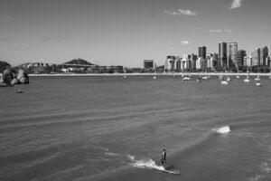 O surf na baía de Vitória é um acontecimento raro, quase experimental… mas quando acontece, transforma o cotidiano da cidade em poesia e movimento. Um instante efêmero em que a natureza, o olhar e o tempo se alinham para criar algo que ultrapassa o surf e toca o simbólico: o encontro entre refração e conexão.
